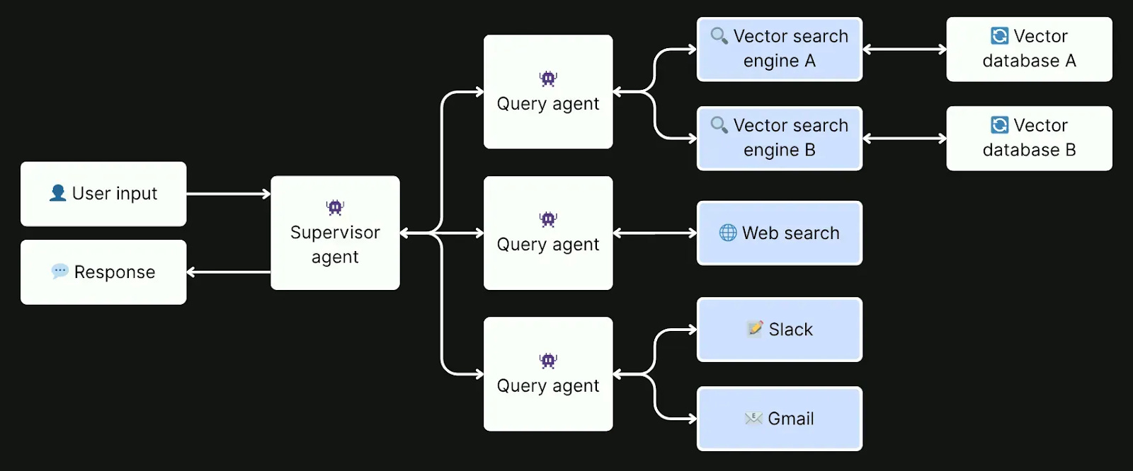 A supervisor architecture is a hub-and-spoke pattern in multi-agent systems. A supervisor agent coordinates a pool of specialist workers; it rarely performs side-effects itself. Instead, it sets policy, reviews plans/actions, manages risk, and decides when to stop, escalate, or re-plan.